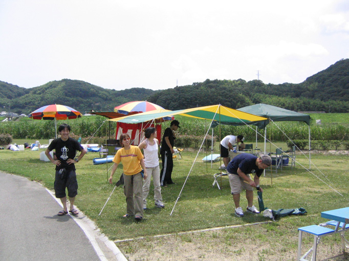 神戸からの遠征組、早々とテント設営。 |