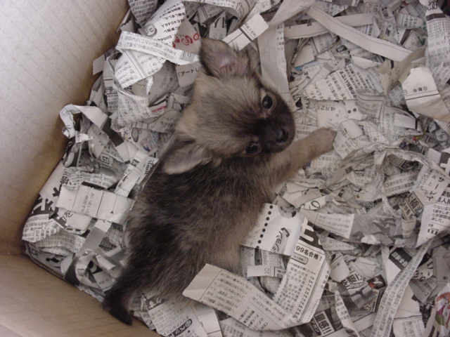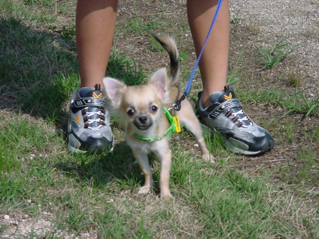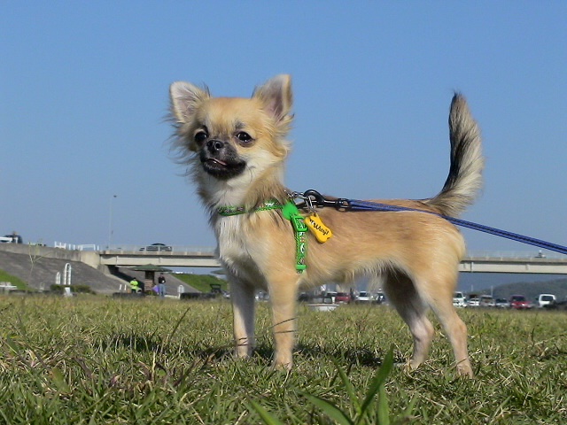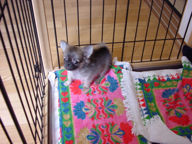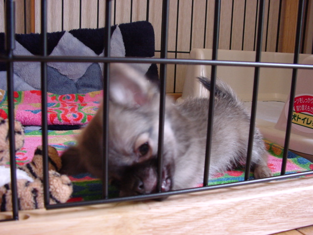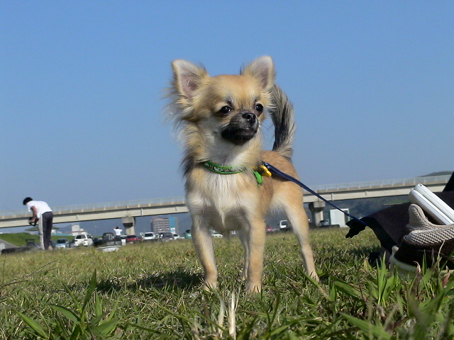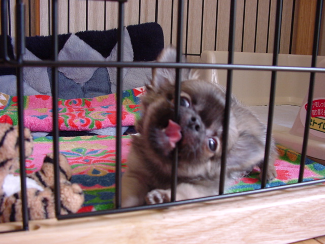 まわりは大きいワンちゃんばかりでオドオドしっぱなしのエドです。 |