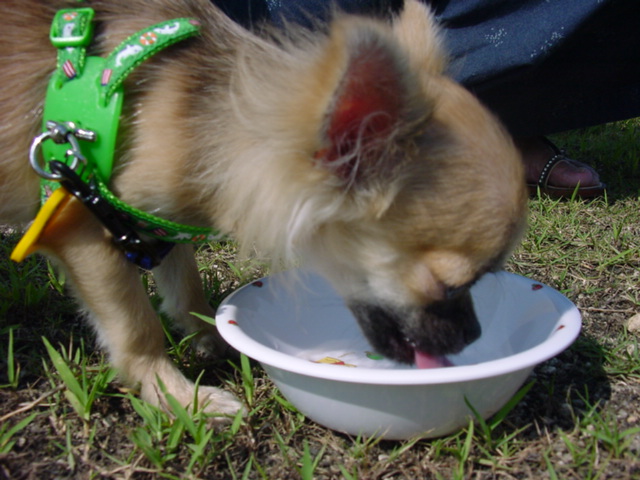 やはり水は冷たいのがいいなあ。走り回っていたらのどが渇く。 |