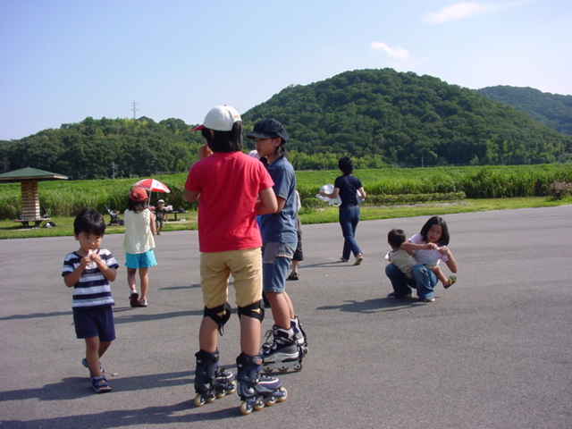 | 2003年5月4日、ASPOに行ってきました。今日は無料開放日。 | 子供が参加できるイベントが少なくて子供たちは食べてばっかり。 | ||