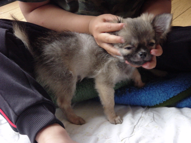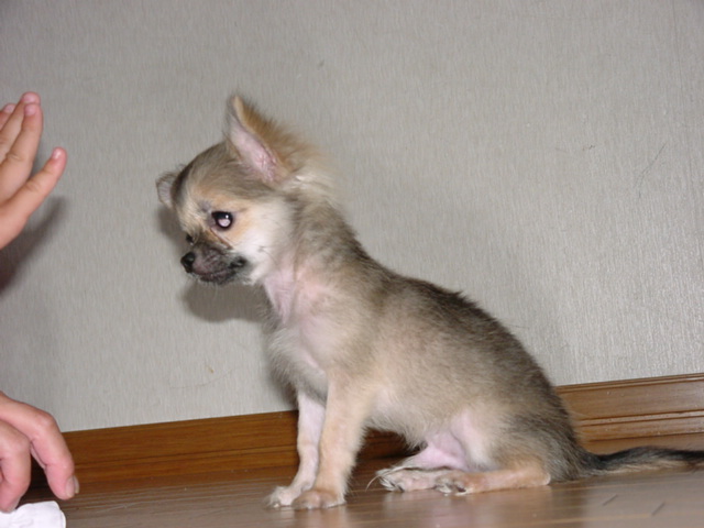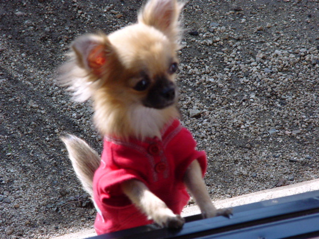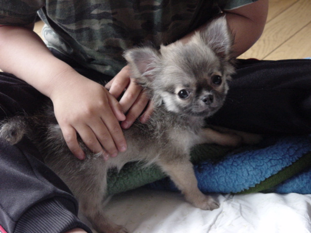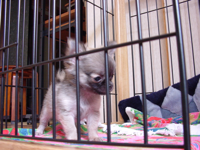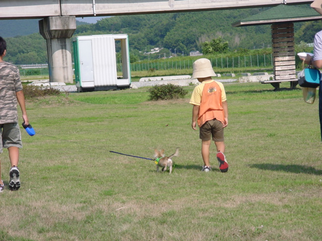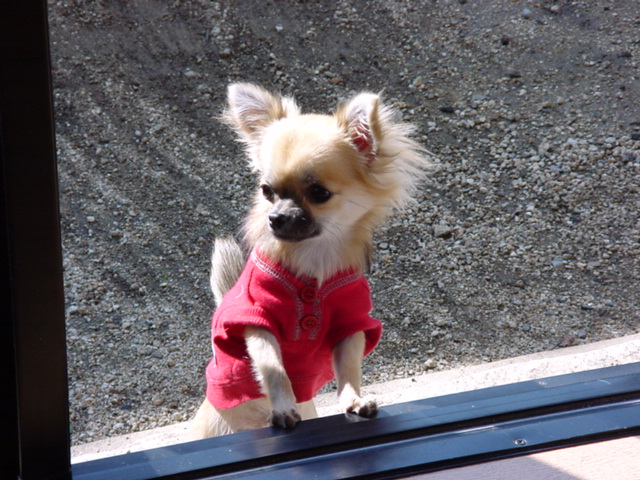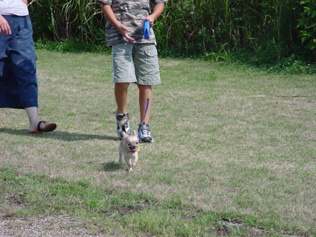 まわりは大きいワンちゃんばかりでオドオドしっぱなしのエドです。 |
