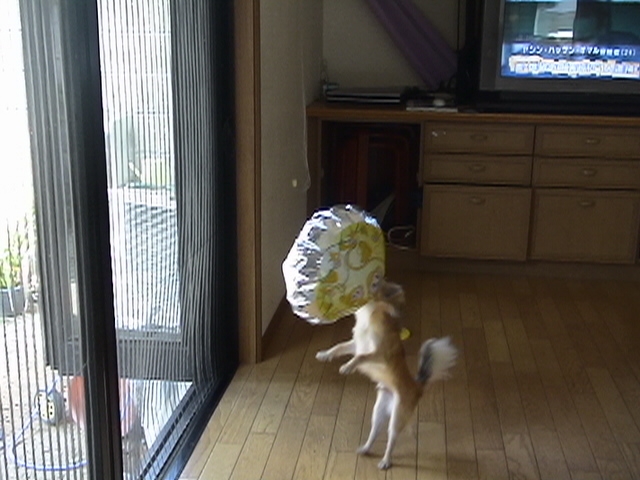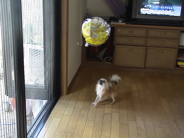 近くにあった風船を咬もうと思ったけどなかなか咬めない。 |