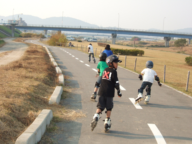 この子達はいつも楽しそうでいいな。小さい子供たちが安全に遊べる環境つくりが必要だ。その点、百間川は最高!!