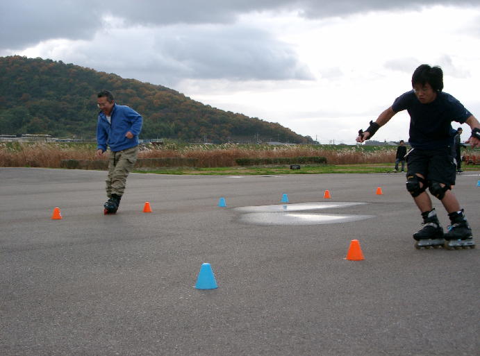ヒロシくんの速いこと。スラローム難しいです。 | ||